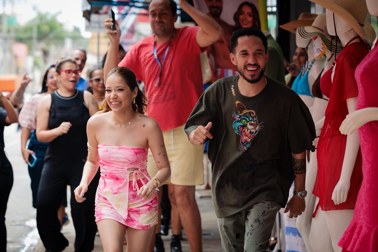 A gravação do clipe “Brincadeira Gostosa” aconteceu em um dos cenários mais emblemáticos de Goiânia: a Rua 44, em frente à Rodoviária, reconhecida nacionalmente como um dos maiores polos de moda popular do Brasil. O local, que pulsa diariamente com movimento, diversidade e autenticidade, foi escolhido justamente por representar o coração do povo e a energia das ruas.